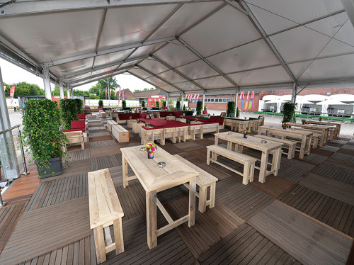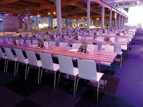 Ähnlich groß war der Vollausstattungsumfang bei einer Gala für 5.000 Personen. Hier galt es 800 Quadratmeter Tanzboden, 13.000 Quadratmeter Teppichboden, 1.650 Quadratmeter Küchen PVC-Boden und 2.000 Quadratmeter Beachwood-Terrassenboden mit einer Komplettausstattung im Bereich Mobiliar zu kombinieren. „Das alles geht nur bei einer perfekten Logistik und gut geschultem und erfahrenem Personal“, erläutert Jürgen Bungert. Grund genug für Event Rent, in beides immer wieder zu investieren.